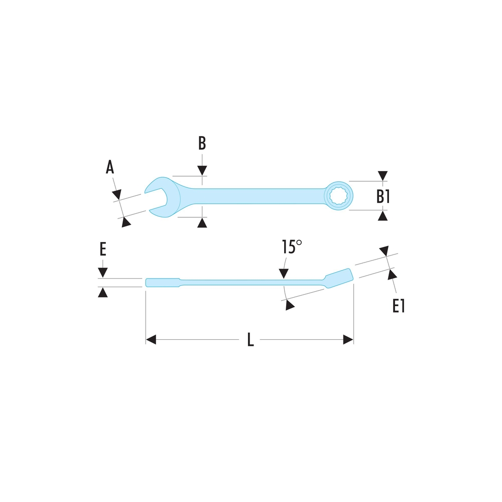 Cette clé mixte est conçue pour travailler sur des applications variées grâce à son œil et sa fourche inclinés à 15°, permettant un accès aisément aux fixations dans des espaces restreints. Sa conception extra-longue permet de transmettre de manière optimale un couple élevé, réduisant l’effort nécessaire lors du serrage ou du desserrage des écrous et boulons.