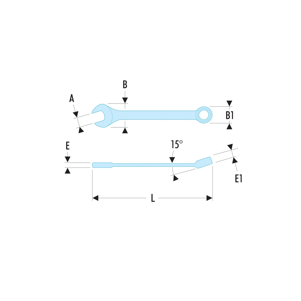 Cette clé mixte est conçue pour offrir un couple élevé grâce à sa poignée extra-longue, permettant ainsi de réaliser des opérations avec un minimum d'effort. Son design incliné à 15° pour l'œil et la fourche facilite l'accès aux espaces restreints. Elle est idéale pour les mécaniciens professionnels et les amateurs de bricolage.