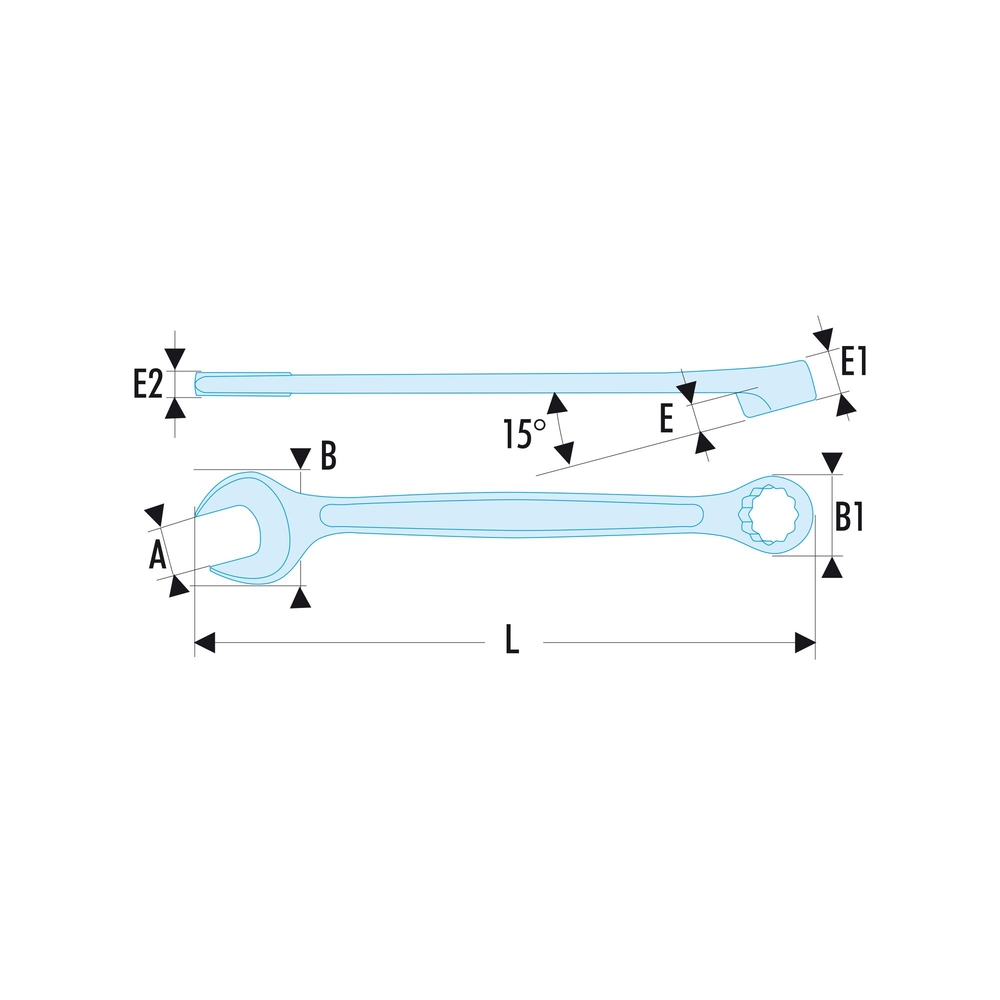 La clé offre une haute résistance mécanique tout en ayant un encombrement réduit, conforme aux normes aéronautiques. Sa tête annulaire présente une extrémité ouverte (taille E) pour un accès facilité aux vis encastrées, et son profil OGV® avec bague 12 pans assure un serrage puissant tout en protégeant l’écrou. La tête annulaire est inclinée à 15°, tandis que l'extrémité ouverte est également coudée pour un meilleur accès. Avec une finition chrome satiné, cette clé de 32 mm se distingue par sa durabilité et son efficacité.
