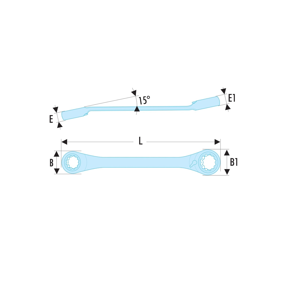 Son décalage de 15° permet une meilleure maniabilité, rendant l'outil idéal pour accéder facilement à des endroits difficiles tout en évitant les obstacles. Le mécanisme à cliquet compact facilite l'inversion par levier, tout en garantissant une utilisation rapide et efficace. Il est important de noter que cette clé est compatible avec presque toutes les dimensions, à l'exception des tailles 6 mm, ainsi que 7, 8 et 9 mm.