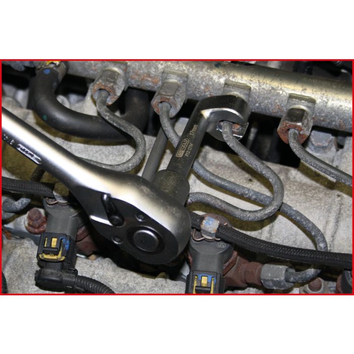 Découvrez la clé pour conduites d'injection diesel 1/2'' dotée d'un design optimisé pour un accès facile aux conduites difficiles à atteindre.