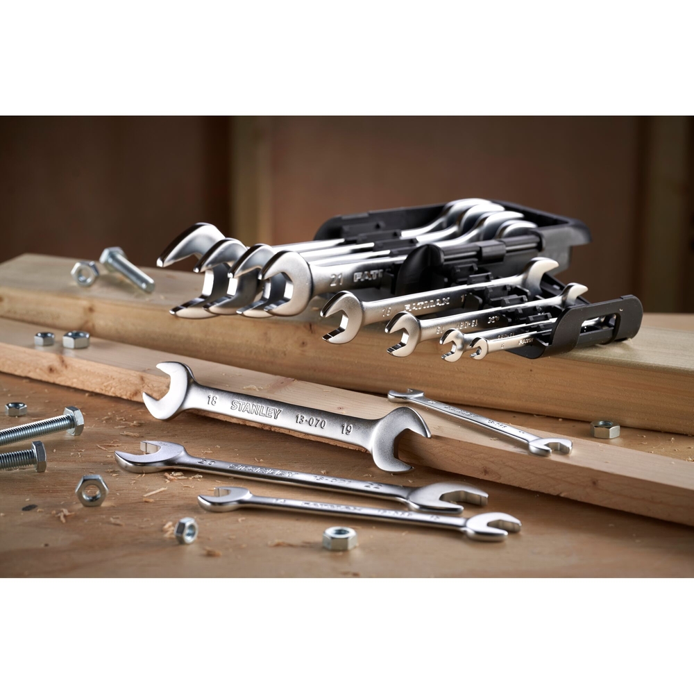Le jeu de clés à fourche STANLEY® FATMAX® se compose de 12 pièces, alliant qualité et fonctionnalité.