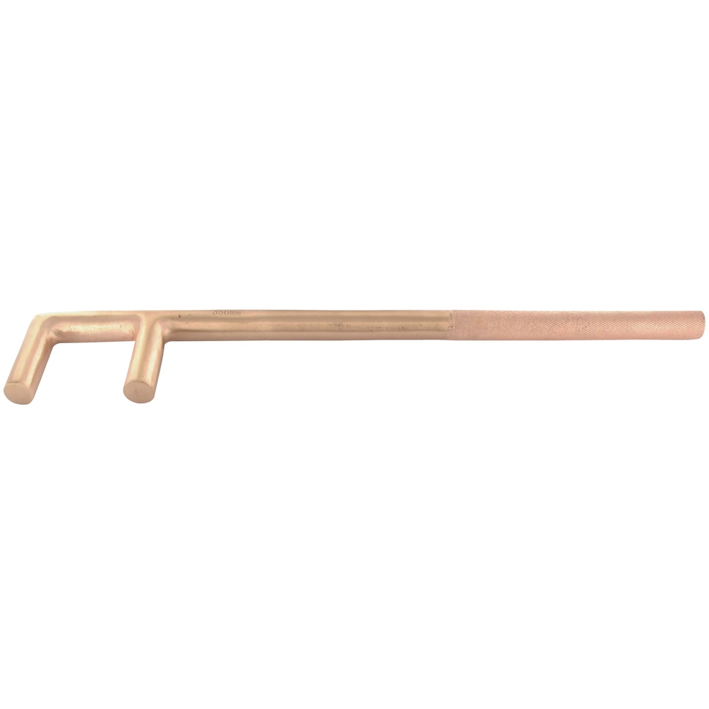 Cette clé à valve est idéale pour les environnements à risque d'explosion, grâce à son alliage spécial en cuivre-béryllium qui lui confère des propriétés antidéflagrantes et antimagnétiques. Son utilisation est recommandée pour le montage et le démontage des vannes dans des installations sensibles, offrant une prise en main confortable grâce à son manche moleté.