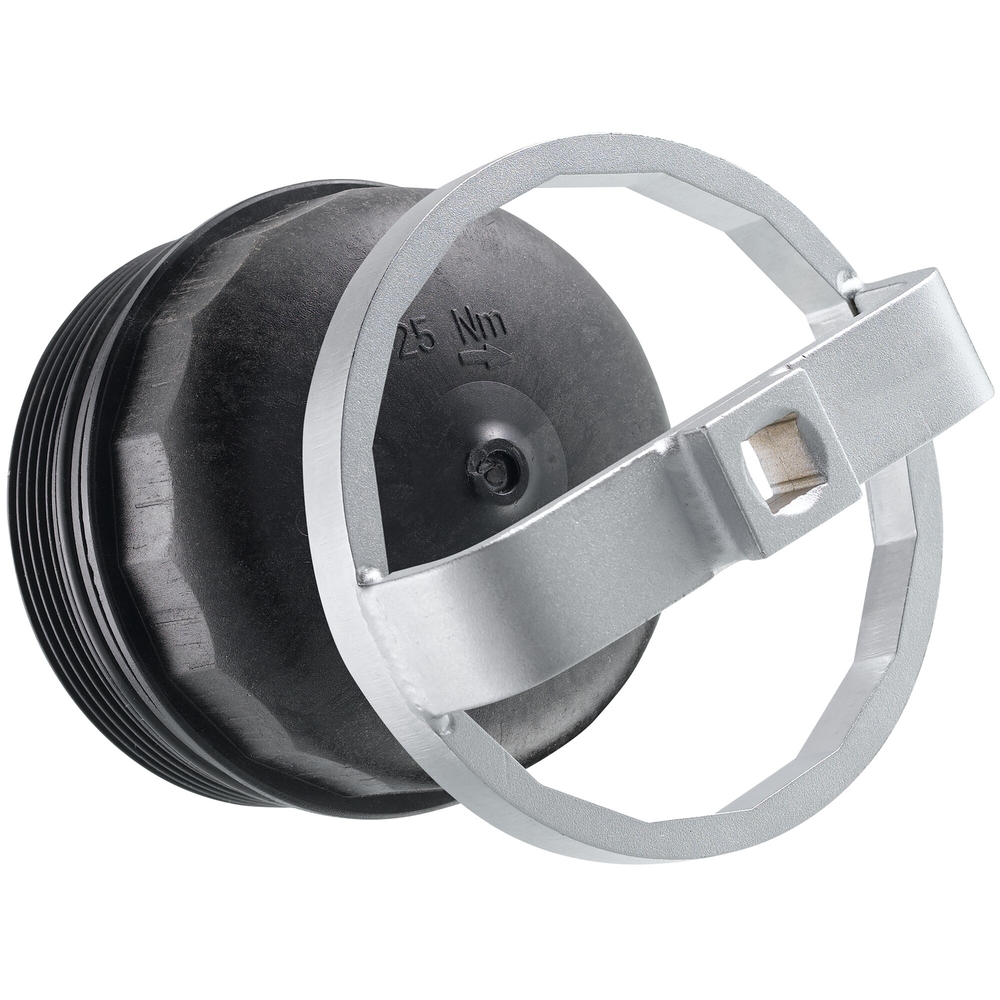Cette clé coiffe est spécialement conçue pour le montage et le démontage des bouchons de filtres à huile en composite, permettant de travailler efficacement sans risquer d'endommager les encoches. Son utilisation est simple : il suffit de l'ajuster sur le bouchon à retirer et de tourner pour dévisser ou visser, facilitant ainsi votre intervention sur les filtres.