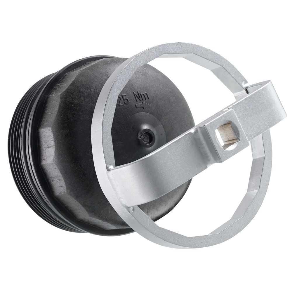 Cette clé est spécialement conçue pour le montage et le démontage des bouchons de filtres à huile en composite. Grâce à son design à 16 pans, elle permet une prise sécurisée et sans effort. Pour une utilisation optimale, veillez à l'ajuster correctement sur le bouchon avant de tourner dans le sens inverse des aiguilles d'une montre pour le dévisser et dans le sens des aiguilles d'une montre pour le revisser.