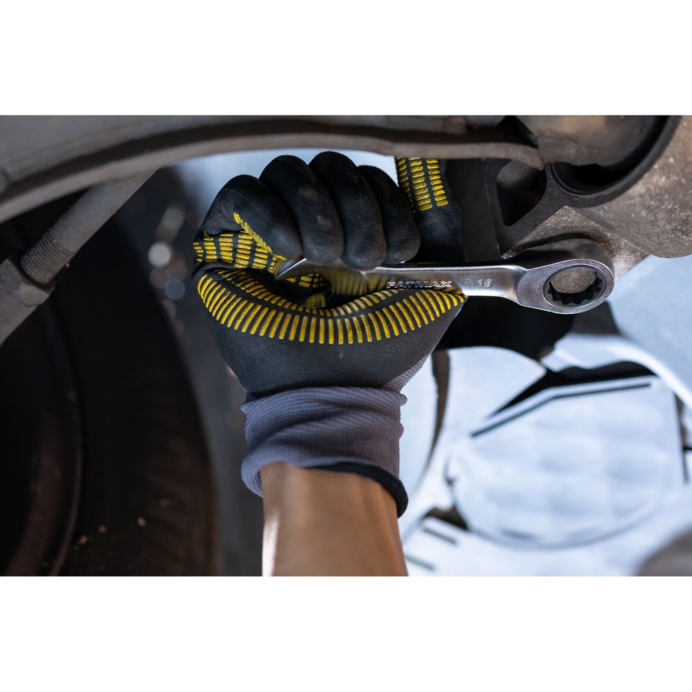 Ces clés à cliquet réversibles sont idéales pour un usage dans des espaces restreints. Grâce à leur conception compacte, elles surpassent les clés traditionnelles en offrant une meilleure accessibilité. Le cliquet à 72 dents, avec un angle de reprise de 5°, facilite le serrage et le desserrage d’écrous et de boulons, rendant votre travail plus rapide et efficace.