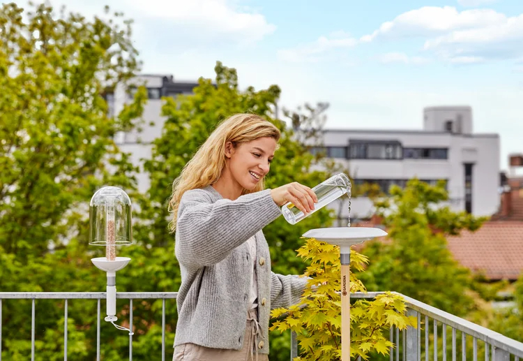 Grâce à la connexion pratique en un clic, le bain pour oiseaux ClickUp! peut être facilement fixé au manche ClickUp! ou au support pour balcon ClickUp!. La connexion est stable et sûre.