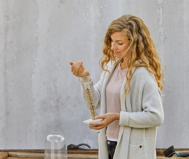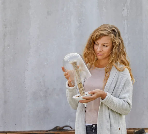 La mangeoire à oiseaux ClickUp! peut contenir tous types de graines pour restaurer les oiseaux et autres animaux.