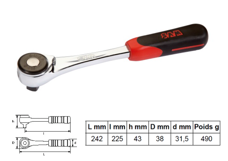 Découvrez CLIQUET PUSH SAM OUTILLAGE 1/2' À INVERSION PAR LEVIER -S158P disponible à l'achat