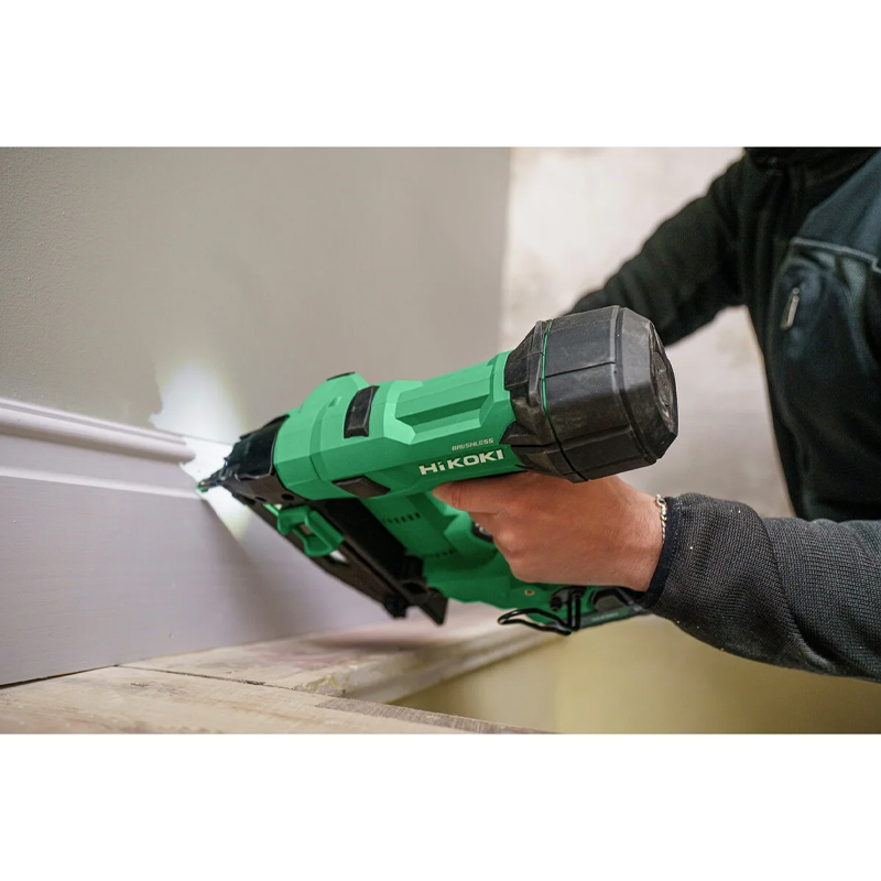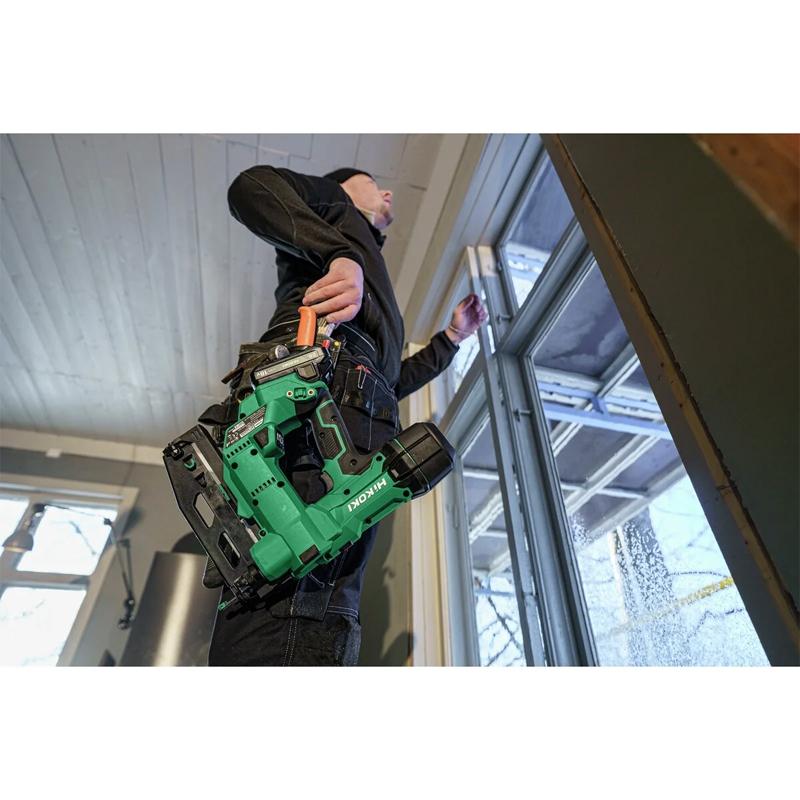 Le cloueur de finition droit Brushless 18 V pour clous de calibre 16 (1,4 x 1,65 mm) combine précision, confort et fiabilité pour les travaux de finition exigeants. Grâce au système HiKOKI Air Spring Drive, il fonctionne sans gaz, sans fumée et sans les contraintes d’un compresseur, tout en reproduisant la sensation et la performance d’un outil pneumatique. Cette technologie propre et sans entretien réduit les coûts d’exploitation en éliminant le recours aux cartouches de gaz, tout en optimisant l’efficacité sur le chantier.