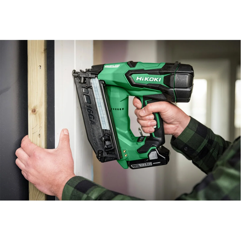 Découvrez Cloueur finition 32-65mm - 18V 2Ah (BSL1820m) brushless - brads 20° gauge 16 - HIKOKI - NT1865DAWYZ disponible à l'achat