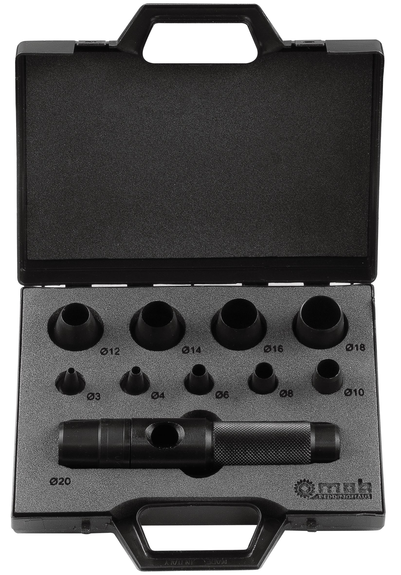 Les découpe-joints peuvent être employés pour la découpe de matériaux tendres (caoutchouc, cuir, feutre, mousse, Téflon,...) comme pour celle de matériaux armés de fibre de verre ou d'acier... (jusqu'à ,3 mm). La résistance des tubes est comprise entre 162 et 18 kg/mm2. COMPOSITION : tubes filetés Diamètre 3-4-6-8-1 mm // tubes lisses Diamètre 12-14-16-18-2 mm // manche de centrage réf. 8811