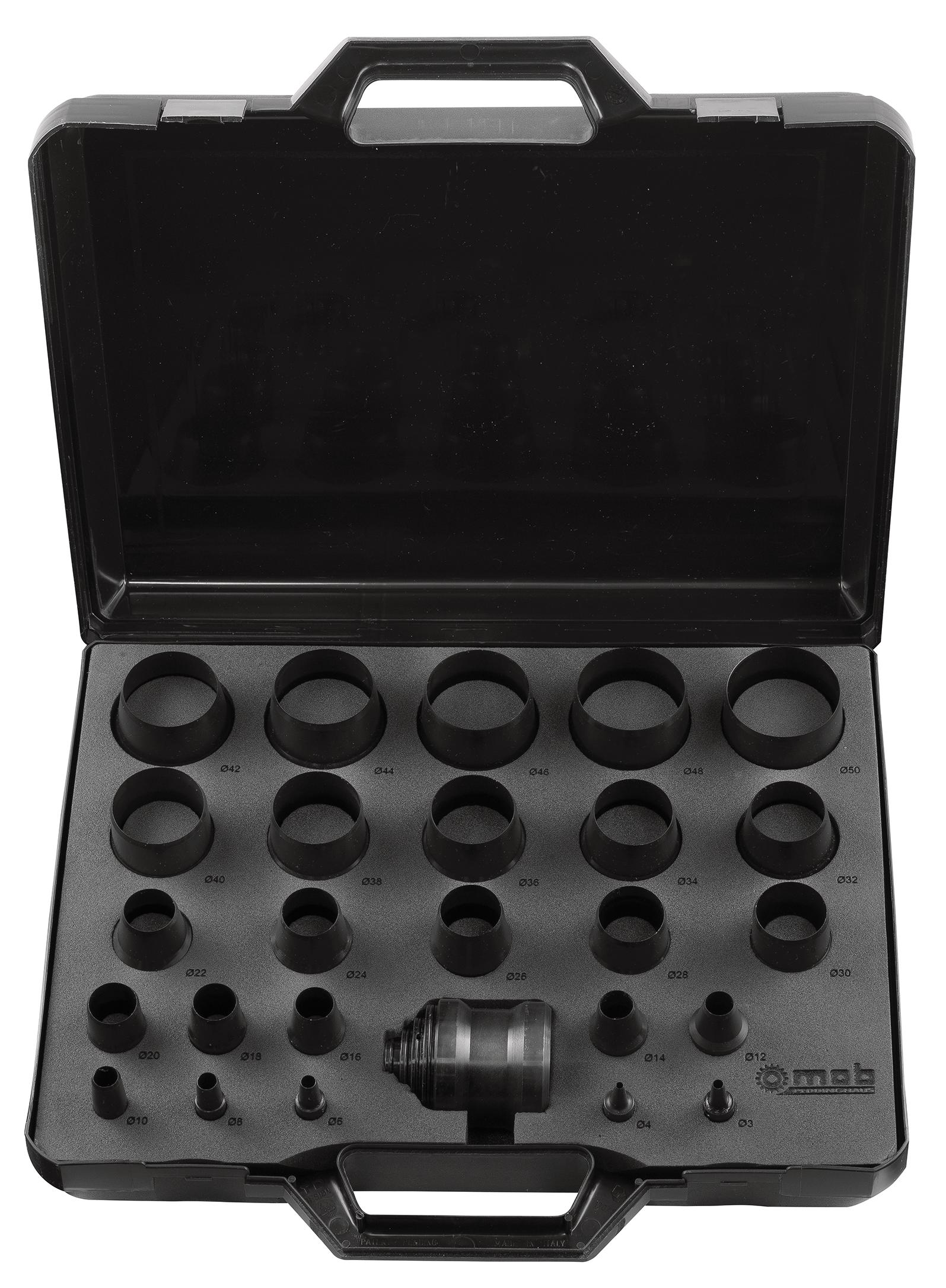 Les découpe-joints peuvent être employés pour la découpe de matériaux tendres (caoutchouc, cuir, feutre, mousse, Téflon,...) comme pour celle de matériaux armés de fibre de verre ou d'acier... (jusqu'à ,3 mm). La résistance des tubes est comprise entre 162 et 18 kg/mm2. COMPOSITION : tubes filetés Diamètre 2-3-5-7-9 mm - tubes lisses Diamètre 11-13-15-17-19-21-23-25-27-29-31-33-35-37-39-41-43-45-47-49 mm - bloc de centrage réf. 8931