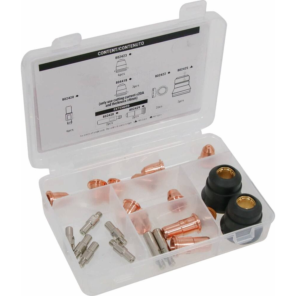le coffret de consommables spécialement conçu pour le découpeur SCHNEIDER plasma 40. Ce kit complet assure une performance optimale et un fonctionnement efficace de votre appareil de découpe.