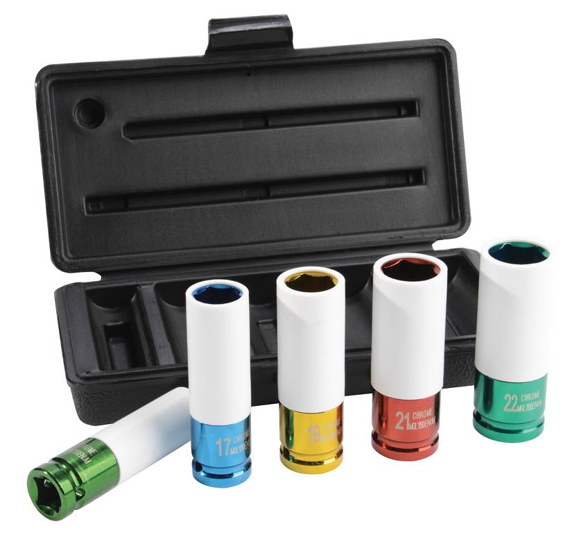 - Coffret de douilles 1/2" à chocs longues pour écrous de roues