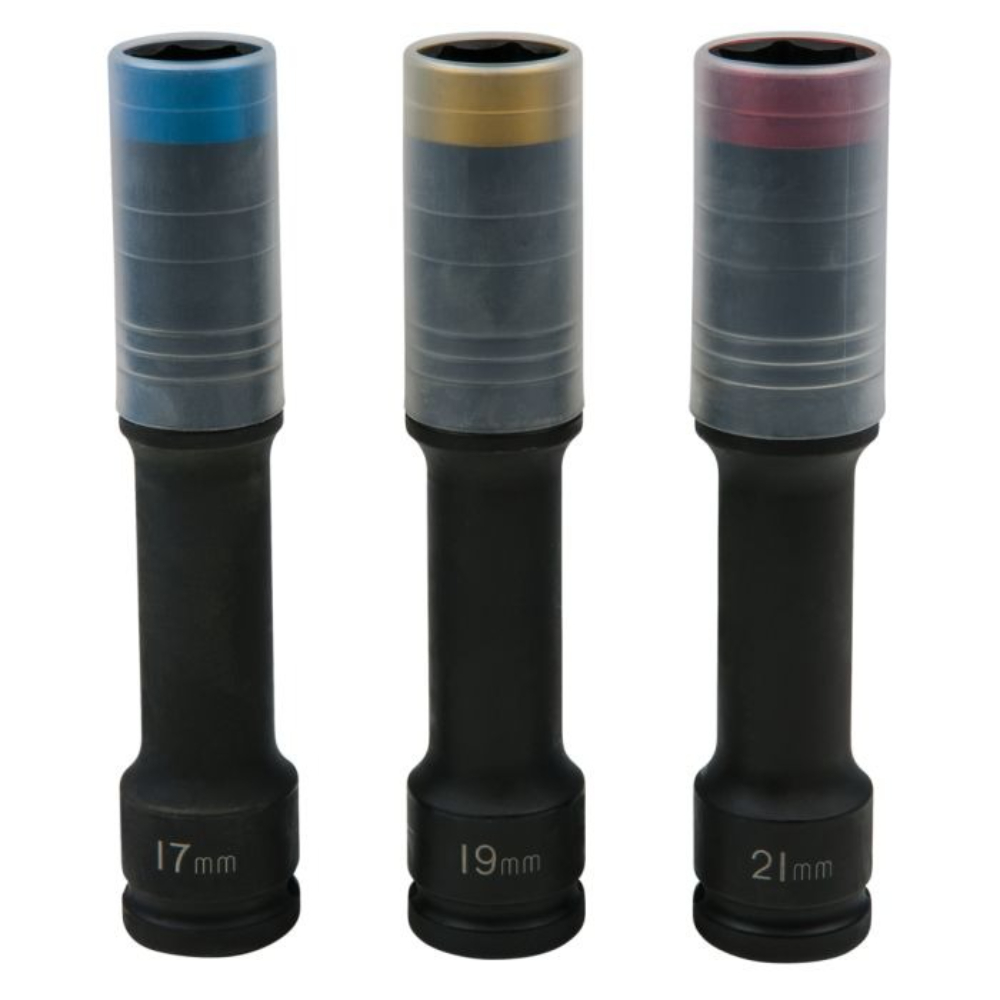 Ce coffret est spécialement adapté pour une utilisation à chocs afin d'assurer un montage et démontage efficace des jantes sans les endommager. Grâce à son revêtement ABS, il protège les surfaces sensibles des jantes en aluminium. L'insert en caoutchouc préserve également l'intégrité des boulons lors de l'utilisation. Pour un usage optimal, il est recommandé de respecter les normes de sécurité lors de l'utilisation des douilles.