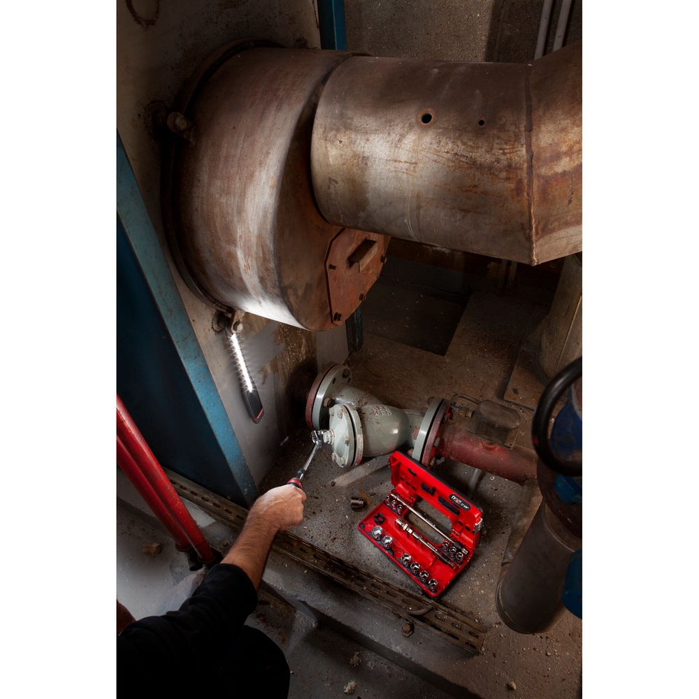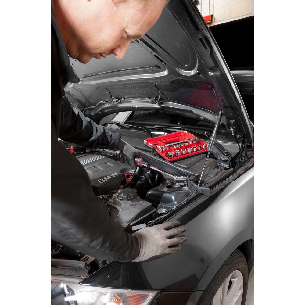 Ce coffret est conçu pour offrir une grande polyvalence. Il comprend un cliquet étanche à haute performance avec un manche extensible et un verrouillage, permettant un accès facile même dans les espaces restreints. Les douilles 6 pans sont compatibles avec les boulons métriques et s’utilisent avec le cliquet et les rallonges fournies pour une efficacité optimale.