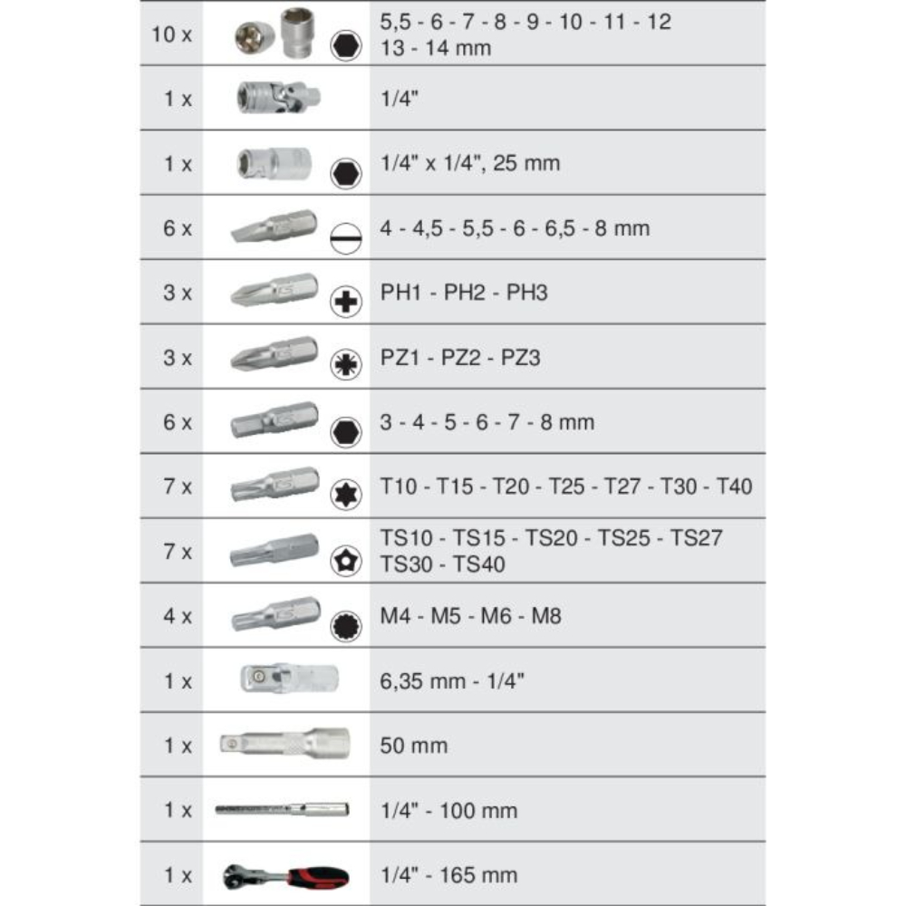 Coffret de douilles et embouts ULTIMATE 1/4" 52 pièces avec cliquet MODIFIX KS TOOLS - 922.0651