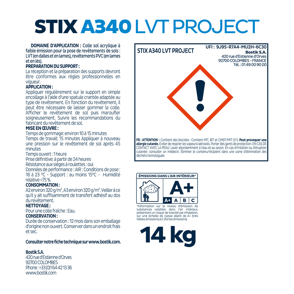 Découvrez Colle acrylique Stix A340 LVT project - Idéal revêtements LVT Ivoire 12kg - BOSTIK - 30623350 disponible à l'achat