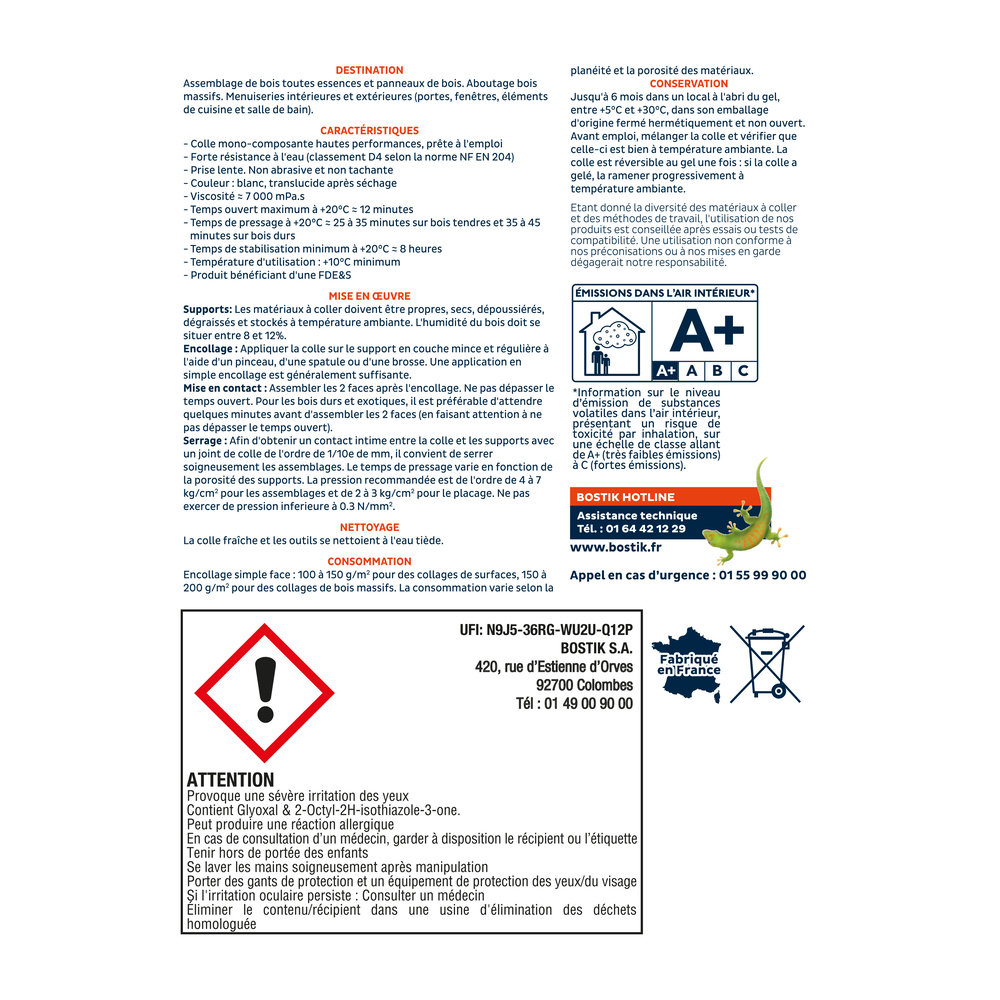 La colle vinylique bois R64 de BOSTIK est idéale pour l'assemblage et le placage du bois. Conditionnée en pot de 5 kg, elle convient parfaitement pour les travaux de menuiserie extérieure grâce à sa formulation adaptée.