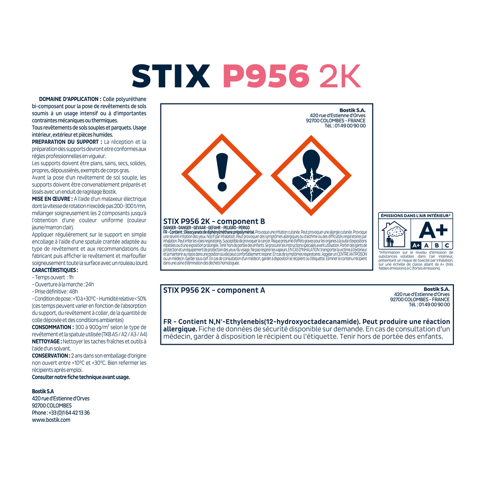 Découvrez Colles réactives Stix P956 2K - Pour sols souples ou rigides - 6kg - BOSTIK - 30615713 disponible à l'achat