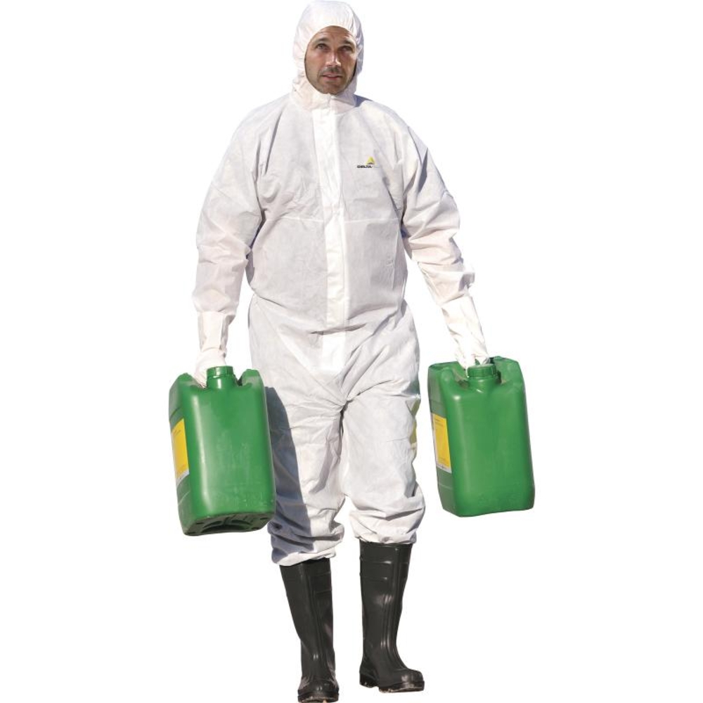 Découvrez la combinaison Delta Plus non-tissée avec capuche - usage unique DT215, conçue pour offrir une protection optimale lors de travaux en milieu risqué. Cette combinaison en blanc est disponible en tailles M, L, XL et XXL, et se distingue par sa confection en polypropylène SMS, un matériau respirant et confortable.