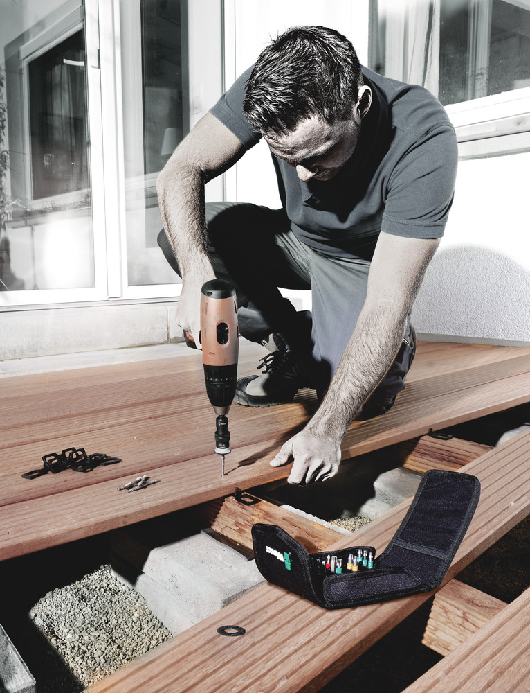 Jeu compact d'outils Wera comprenant les 17 outils de vissage les plus importants pour la construction de terrasses