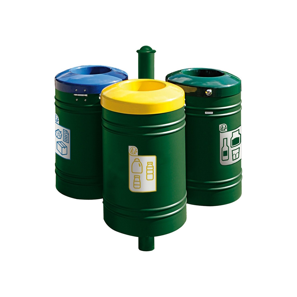 Le verrouillage est sécurisé grâce à une ouverture par clé triangle, une fermeture autocentrante et un pêne. Les corps et couvercles bénéficient d’une finition peinte sur zinc pour une durabilité accrue. En option, un kit de 4 autocollants pour le tri sélectif est disponible, mesurant 250 x 150 mm chacun, afin d’indiquer clairement la nature des déchets à recycler.