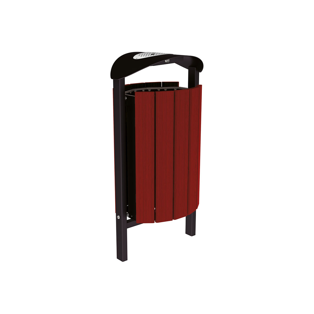 Corbeille Silaos acier et bois 50 litres RAL9005 - Chêne lasuré acajou - cendrier - Scellement direct - PROCITY - 594147.9005.ACAJ