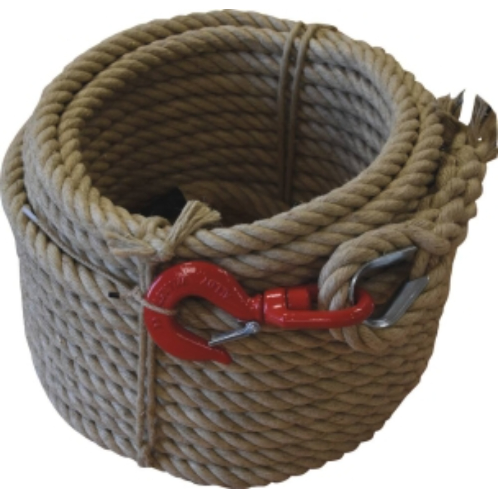 La corde à poulie avec crochet en cordage chanvre est idéale pour vos travaux de levage et d'attache. Ce produit de qualité est conçu avec une boucle épissurée, une cosse métallique et un crochet à émerillon, garantissant sécurité et robustesse pendant son utilisation.