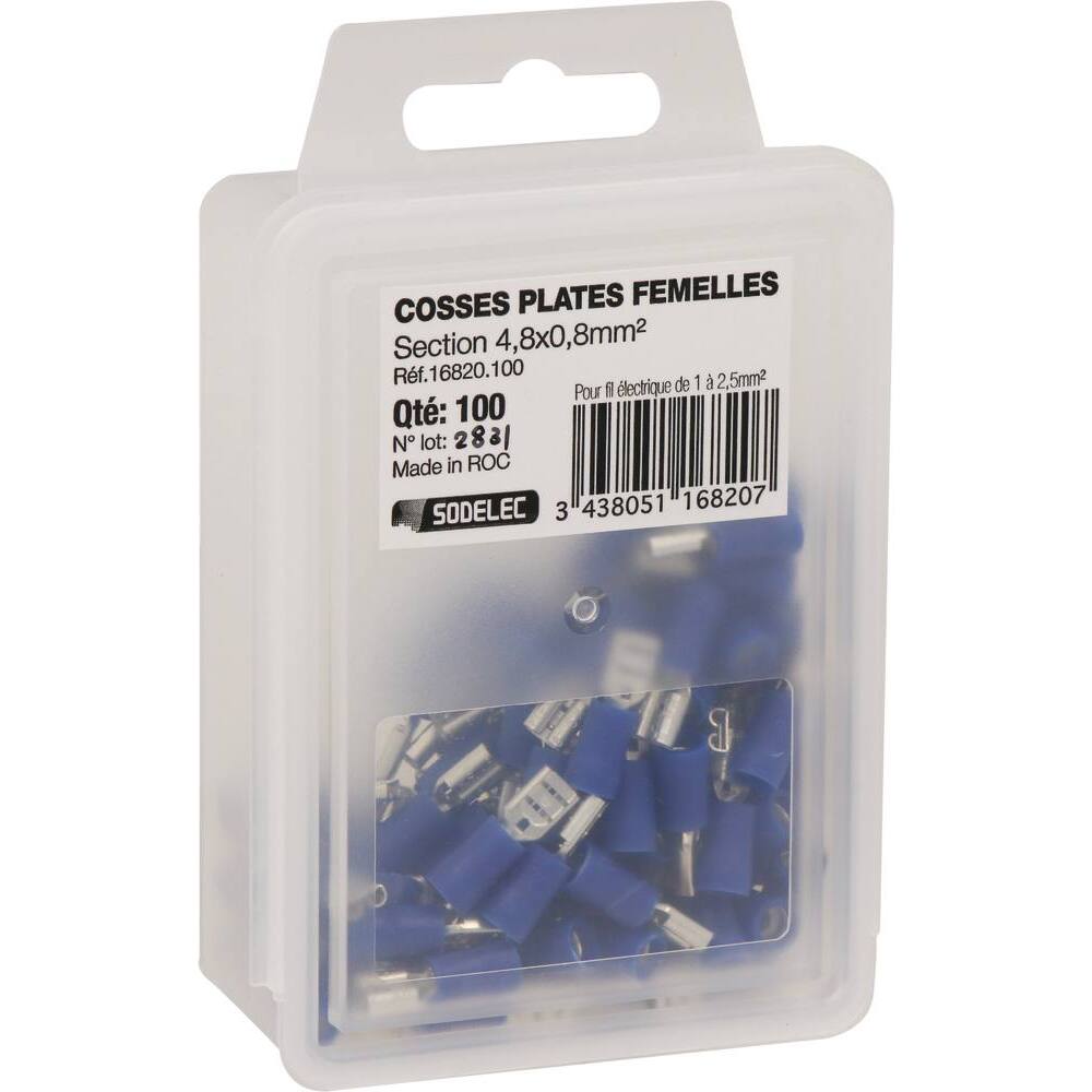 Cosse plate femelle isolée bleue 4,8X0,8mm - blister de 10 - SODELEC - 16820.10