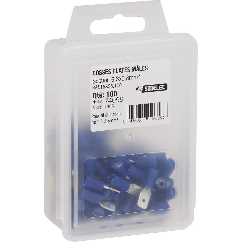 Cosse plate mâle isolée bleue 6,3X0,8 - blister de 10 - SODELEC - 16828.10