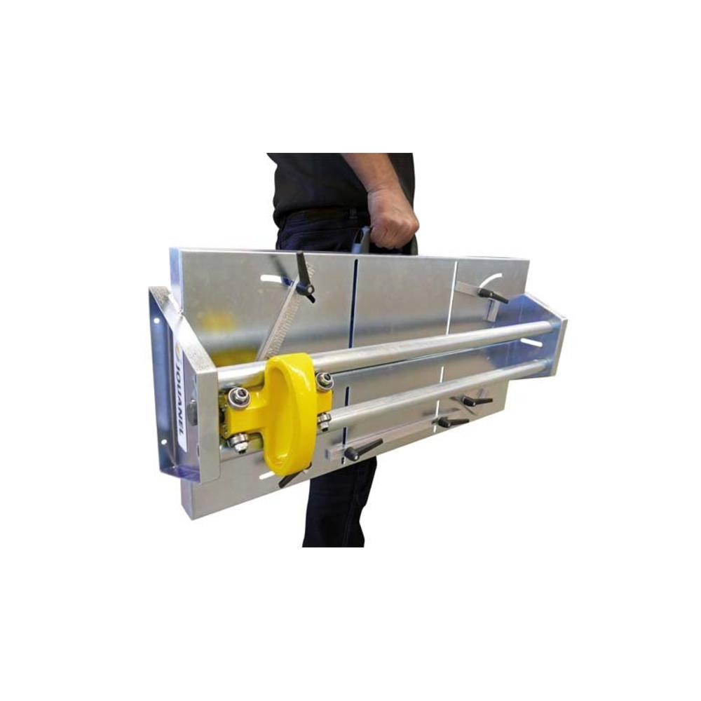 Le coupe-ardoises CA600 est équipé de tampons d’amortissement protégeant contre les chocs en fin de course, d’un dispositif de blocage du chariot pour le transport, ainsi que d’une large poignée de manutention offrant deux positions pour un confort d’utilisation optimal. Le socle peut être accroché sur liteau avec fixation de sécurité par pointes.