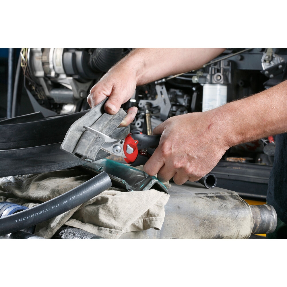 Il est particulièrement adapté aux travaux nécessitant une découpe précise de matériaux souples ou semi-rigides comme le carton, le caoutchouc, le PVC, le cuir, ainsi que la coupe de câbles et durites. Sa lame dégagée facilite l'accès dans des espaces restreints.