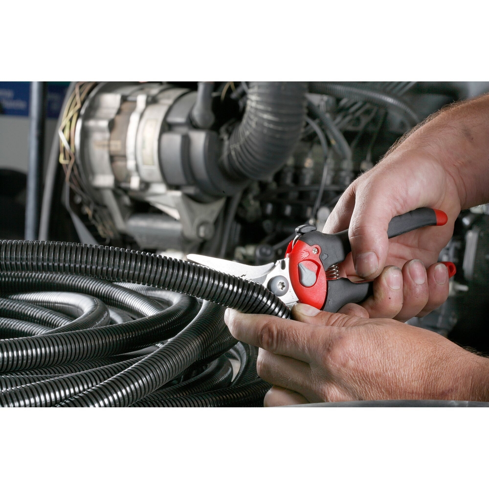Ce modèle permet de couper des câbles électriques de diamètre jusqu'à 2,5 mm, ainsi que des durites, tubes et mousse isolante. Avec une ouverture de lames variant de 29 à 36 mm et une ouverture de la poignée allant de 77 à 102 mm, l'ergonomie de l'outil est optimisée. Les gaines bi-matière offrent une prise en main confortable et anti-dérapante. De plus, le tranchant légèrement cranté de la lame prévient tout risque de dérapage, assurant ainsi une précision accrue. Un indispensable pour toutes vos coupes quotidiennes.