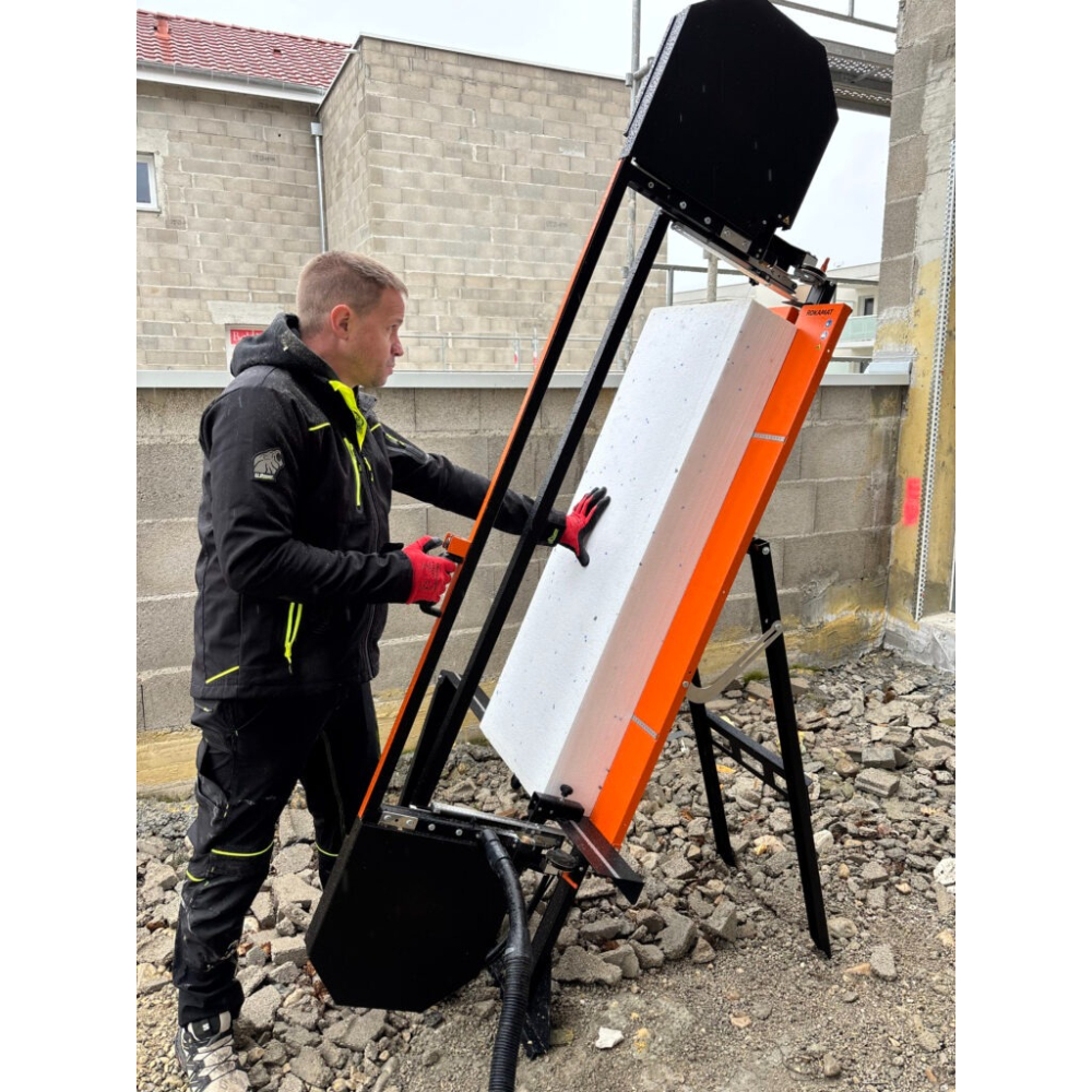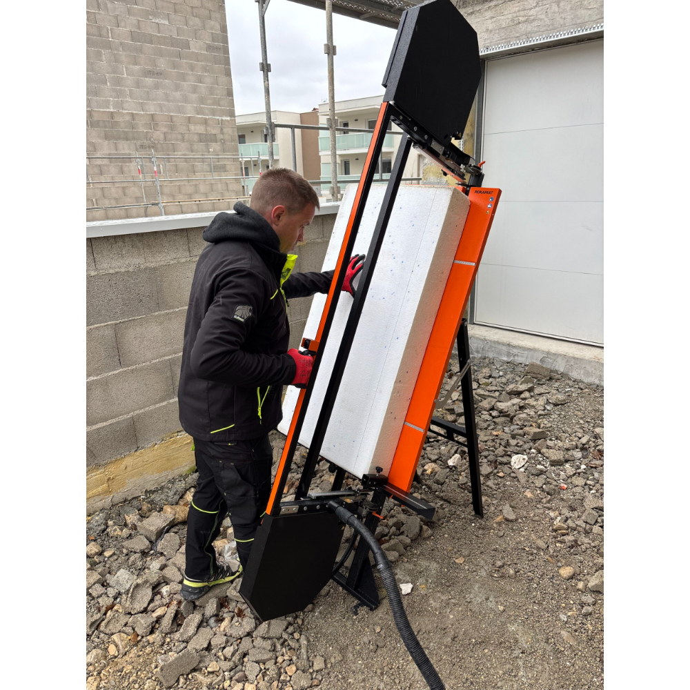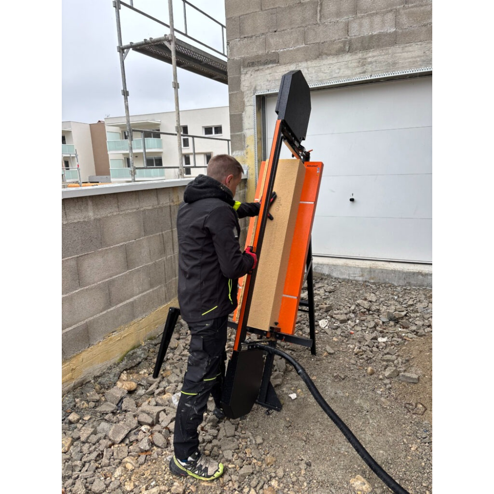 Ce système breveté assure un usage innovant et efficace pour la découpe de panneaux d’isolation jusqu’à 1 250 mm de hauteur.