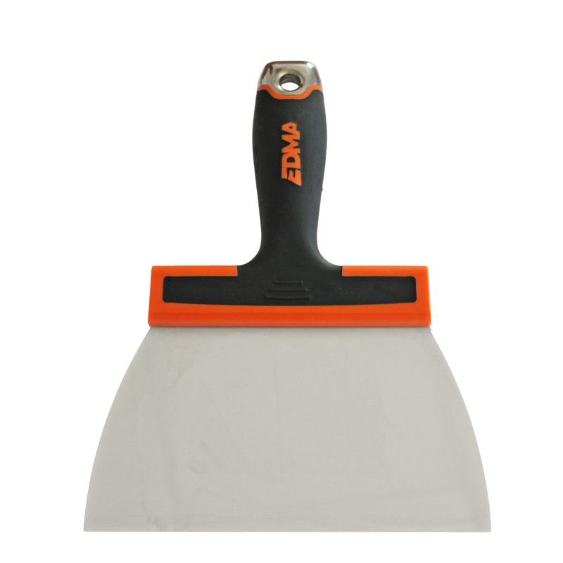La lame inox de 0,5 mm d'épaisseur est conçue pour offrir une performance optimale sur toutes les surfaces. Sa forme galbée assure qu'elle reste bien à plat lors de son utilisation, garantissant ainsi une précision accrue. Un renfort rigide est intégré sur toute la largeur de la lame, apportant une robustesse supplémentaire. Le manche bi-matière est doté d'une tête en métal, offrant une prise en main confortable et une manipulation facile. Cet outil est idéal pour les professionnels recherchant efficacité et durabilité dans leurs travaux.
