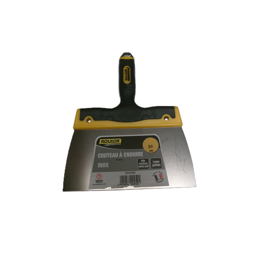 Découvrez le couteau à enduire tri-matière inox de 20 cm de la marque ROULOR, un outil indispensable pour vos travaux de finition.