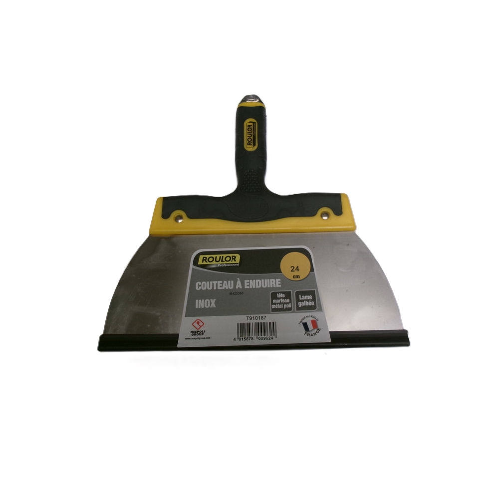 Découvrez le couteau à enduire tri-matière inox de 24 cm de ROULOR, un outil indispensable pour les travaux de finition.