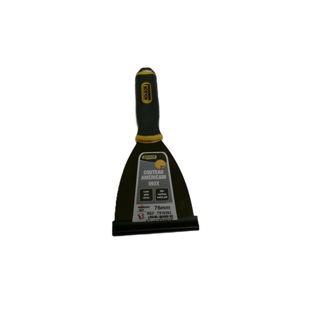 Le couteau à joints tri-matière inox 7,6 cm de ROULOR est un outil essentiel pour les travaux d'enduit.