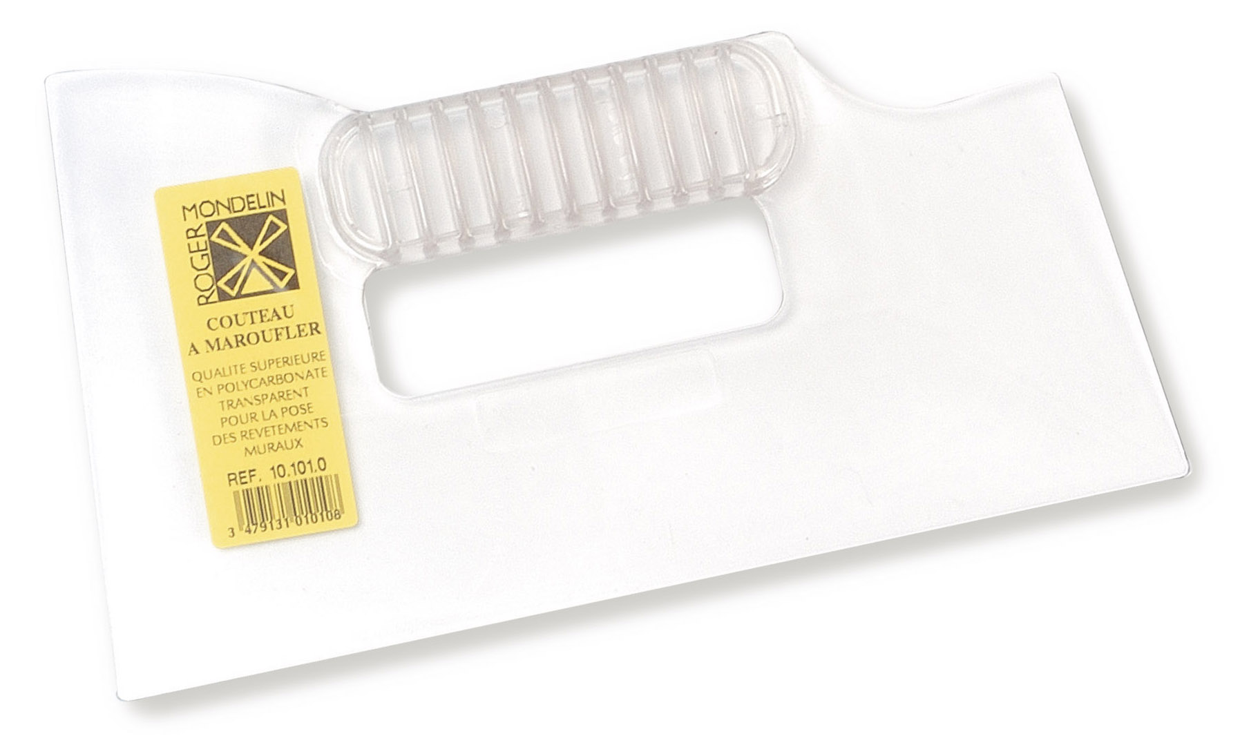 Le COUTEAU A MAROUFLER MONDELIN SUPERIEUR est l'outil parfait pour la pose de revêtements muraux, offrant une manœuvrabilité exceptionnelle grâce à sa conception soignée. Fabriqué en polycarbonate transparent de qualité supérieure, il se distingue par sa robustesse et sa durabilité, garantissant des résultats impeccables. Avec sa poignée ergonomique, il assure une bonne prise en main, ce qui permet de travailler avec précision et efficacité dans divers contextes de pose.