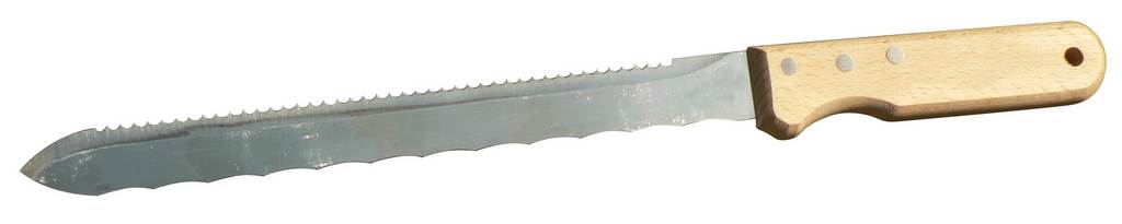 Ce couteau est conçu pour découper la laine de verre avec précision. Il est doté d'une lame de 280 mm, avec une épaisseur de 1,5 mm, idéale pour les travaux délicats. La poignée en bois ergonomique garantit un confort optimal lors de son utilisation, ce qui permet d'effectuer des coupes nettes et exactes.