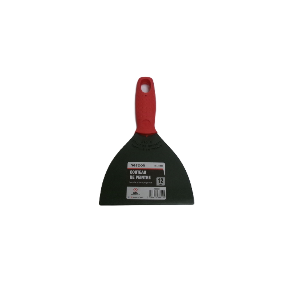 Sa lame, composée de polyamide armé de fibre de verre, garantit robustesse et résistance à la chaleur, supportant des températures allant jusqu'à 210°. Le design de 12 cm permet une manipulation précise pour tous vos projets de bricolage. Le produit est conçu pour garantir une durabilité et une efficacité optimales lors de vos travaux manuels.