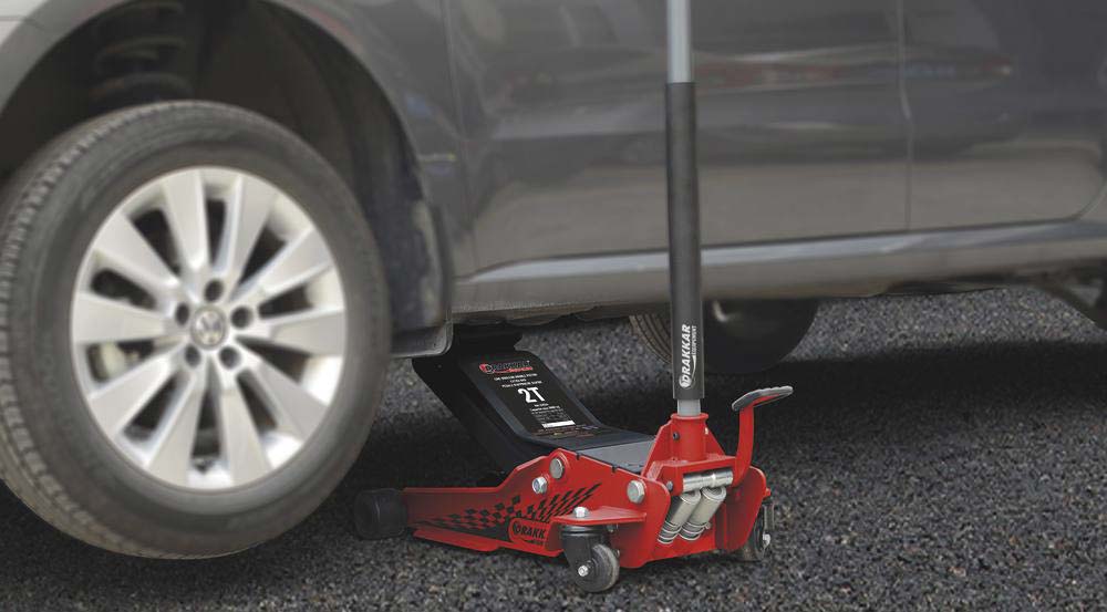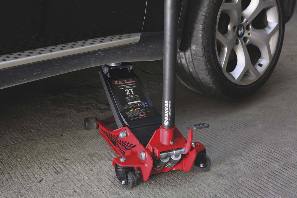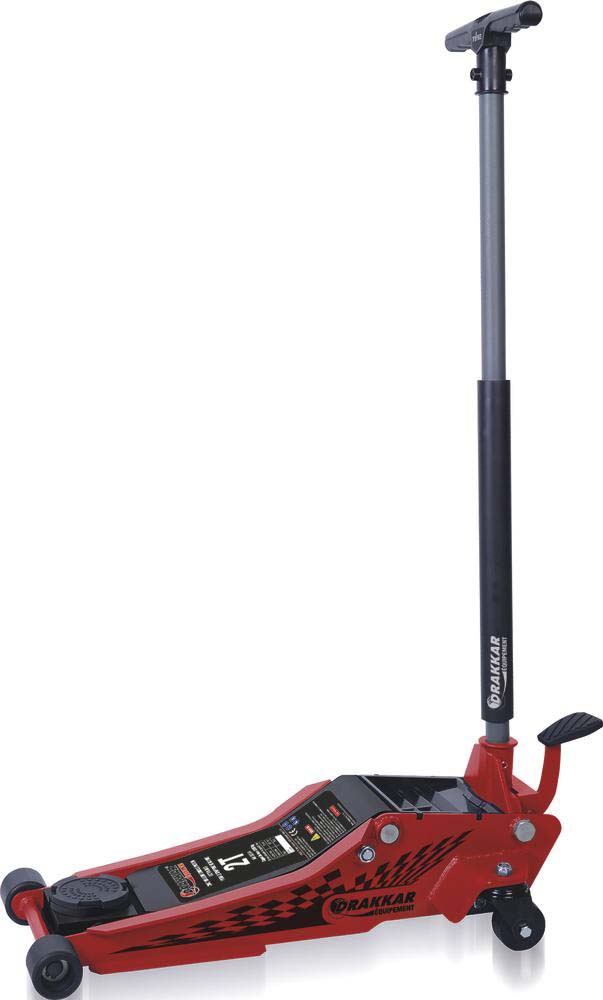 Découvrez Cric rouleur 2t double piston + pédale roues nylon 75/500mm longueur 786mm surbaissé DRAKKAR EQUIPEMENT - 52524 disponible à l'achat