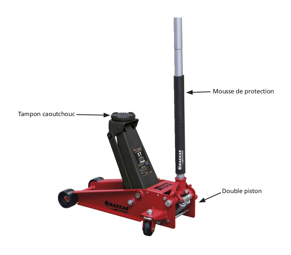 Découvrez Cric rouleur 3t double piston 128/465mm longueur 695mm DRAKKAR EQUIPEMENT - 52540 disponible à l'achat