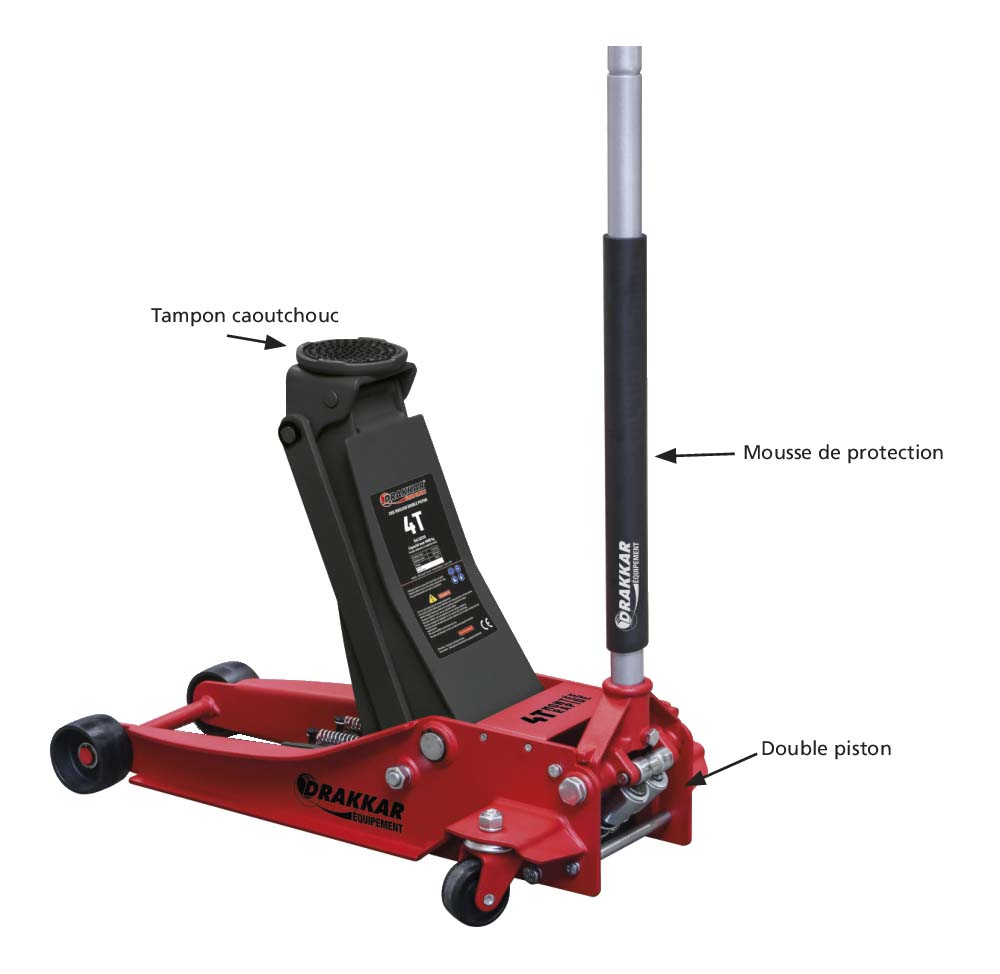 Découvrez Cric rouleur 4t double piston 105/520mm longueur 765mm DRAKKAR EQUIPEMENT - 52570 disponible à l'achat