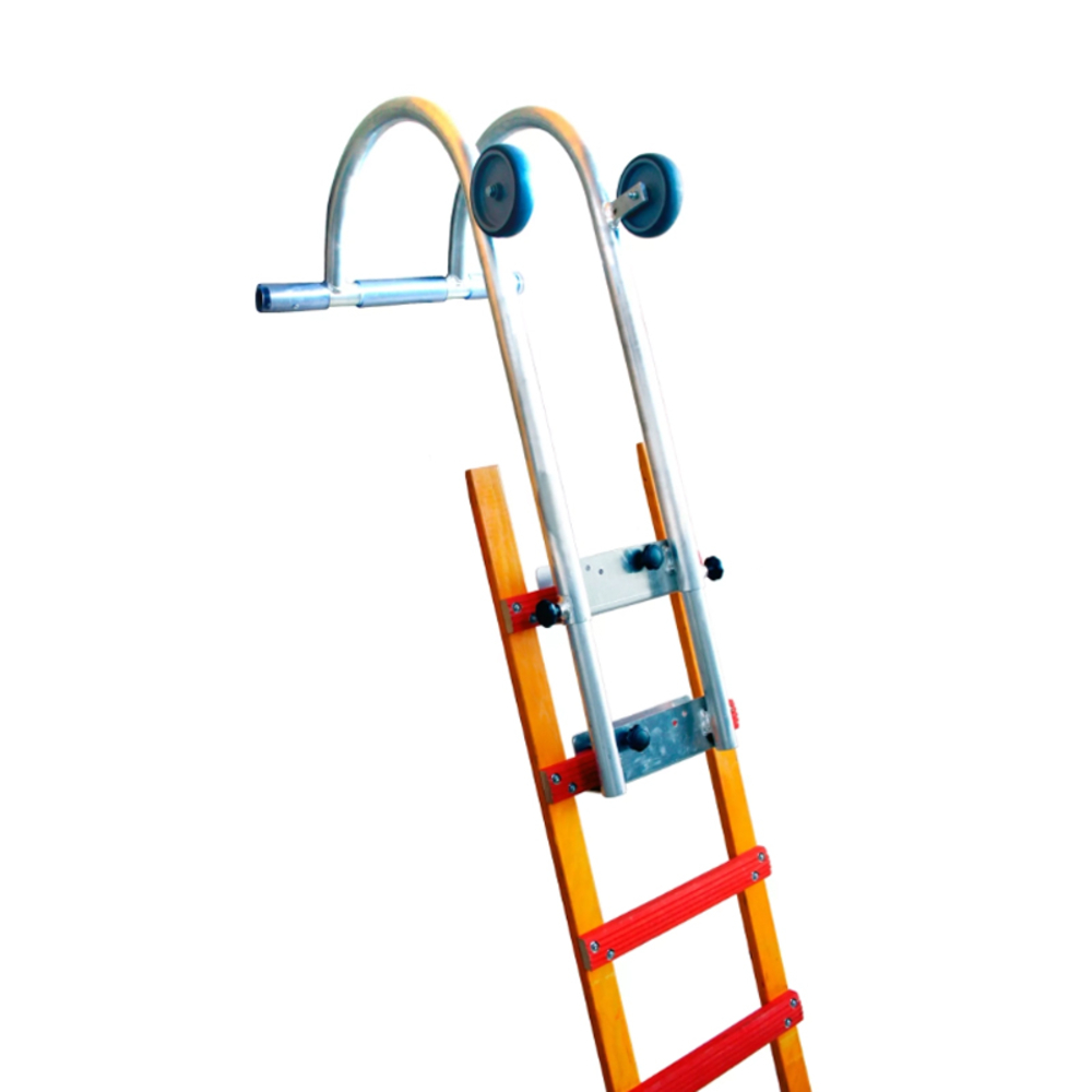 Adapté aux échelles en bois Centaure, ce crochet se fixe facilement sur les deux barreaux supérieurs de l'échelle grâce à un système de verrouillage fiable. Doté de deux roulettes avec protection en caoutchouc, il offre une grande surface d'appui pour éviter d'endommager les toitures tout en facilitant l'accès en toute sécurité. Ce produit est également adaptable sur les échelles de toit plates, ce qui élargit son domaine d'utilisation. La conception de ses tubes rallongés très larges améliore encore la sécurité, offrant une stabilité maximale lors des travaux en hauteur.