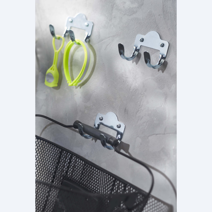 Découvrez le crochet double multi usage, un accessoire robuste et pratique pour votre espace de travail. Avec une résistance de 20 kg, il est parfait pour accrocher vos outils de jardin tels que des marteaux, des pioches ou des équipements électroportatifs.