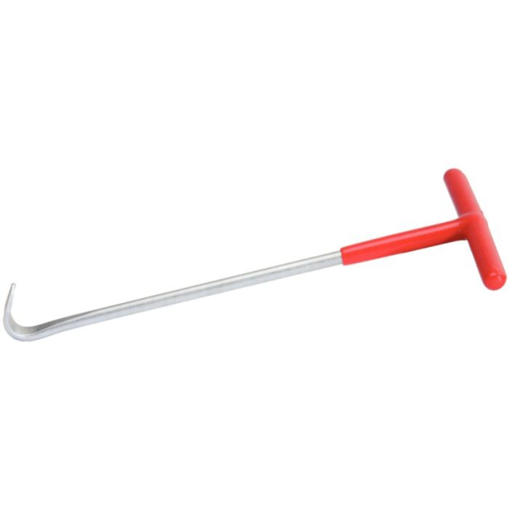 Le crochet coudé à 100° est spécialement conçu pour manipuler des anneaux de silent blocs, permettant un accès optimal dans des espaces restreints. Sa poignée en T gainée de PVC optimise la prise en main, garantissant un confort pendant les opérations. Cet outil est universel et convient à différentes marques telles que Ford ou BMW, ce qui en fait un choix polyvalent pour vos travaux automobiles.