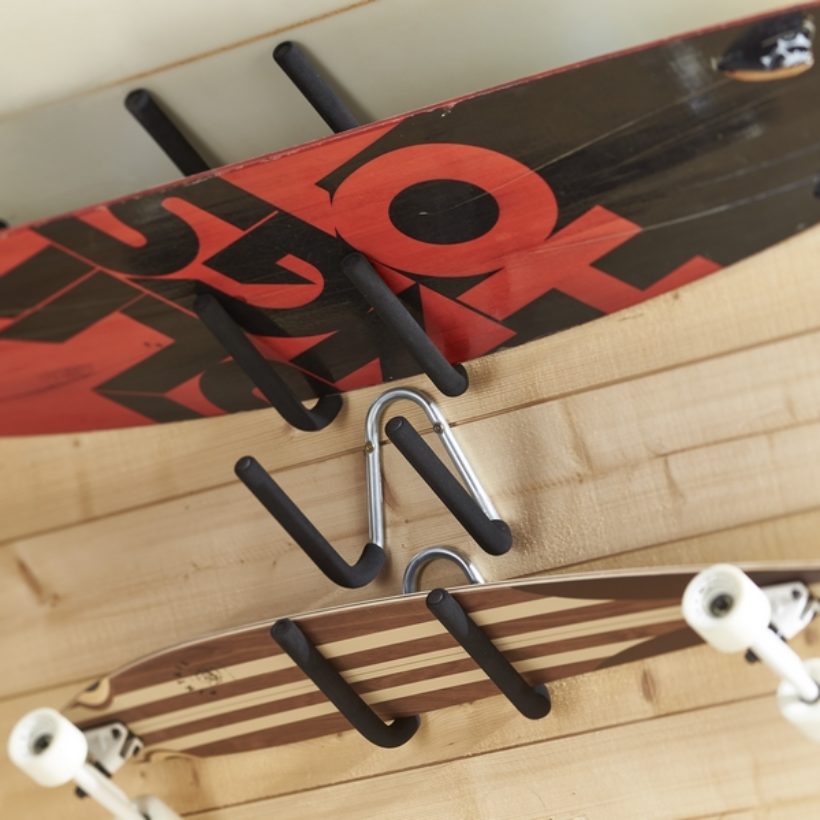 Découvrez le crochet range surf, un accessoire pratique pour suspendre votre surf en toute sécurité. Ce crochet double en acier zingué est conçu avec une gaine moussée et deux bouchons aux extrémités pour protéger votre équipement.